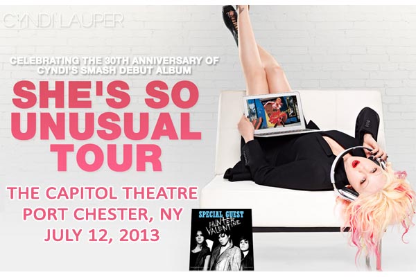 Don’t miss this great opportunity to see Cyndi Lauper live on her She’s So Unusual Tour with opening guests Hunter Valentine Friday July 12 at The Capitol Theatre in Port Chester!
