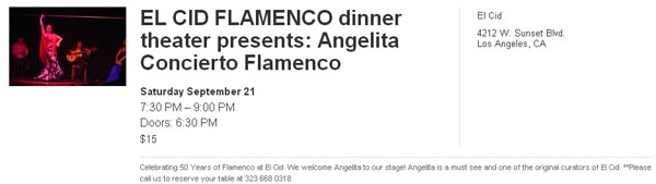We welcome Angelita to our stage! Angelita is a must see and one of the original curators of El Cid.