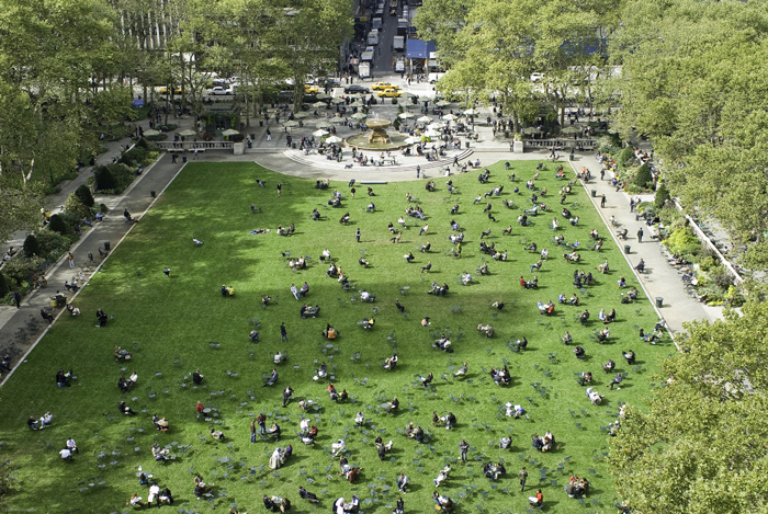 The lawn is lush and green and the flowers change seasonally but Bryant Park is more than a garden. When you first discover it, nestled in its canyon of skyscrapers, it’s like an oasis—a refuge of peace and calm. But Bryant Park is a city park, full of historical monuments and urban amenities. The park is a social place where friends meet, eat lunch, chat, stroll, listen to music, work on the wireless network, or simply sit and think.